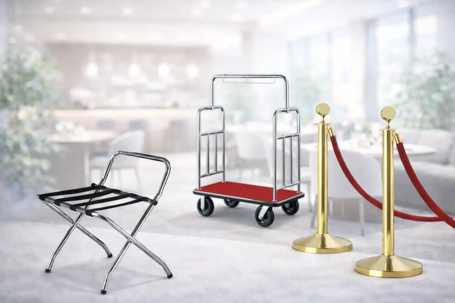 Ausstattung für Organisation und den ersten Eindruck: Hotelwagen, Rezeptionsbedarf und Zubehör für einen reibungslosen Ablauf im Haus.