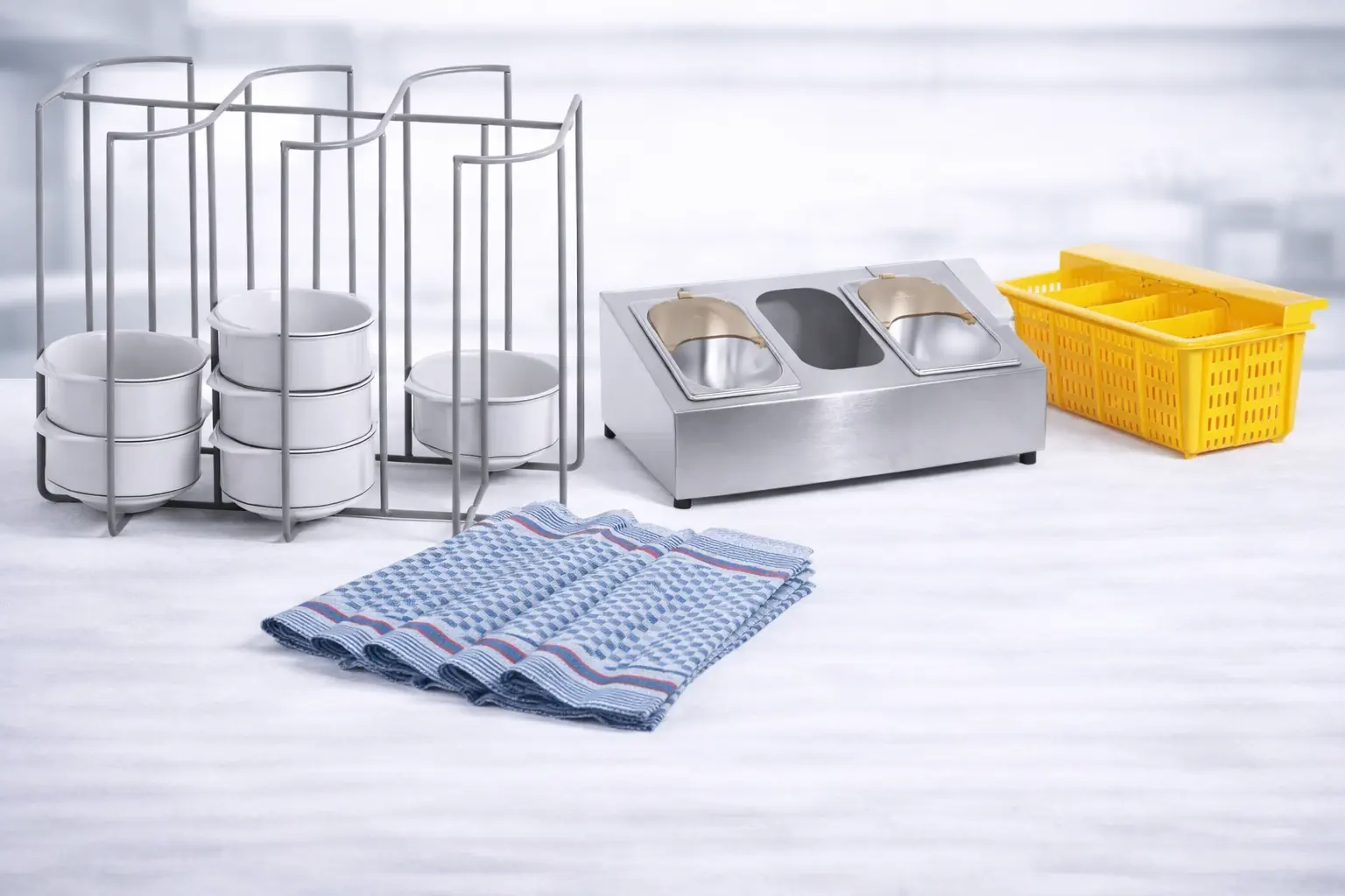 Ausrüstung zum Organisieren, Transportieren, Lagern und Reinigen – unterstützt strukturierte Abläufe und die Einhaltung von Hygienestandards im Betrieb.
